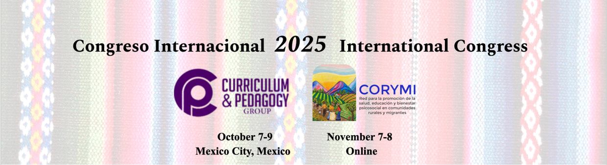 El grupo de Curriculum and Pedagogy (C&P) y la Red para la Promoción de la Salud, Educación y Bienestar Psicosocial en Comunidades Rurales y Migrantes (CORYMI) le invitan cordialmente a registrarse para nuestra conferencia anual, que se llevará a cabo del 7 al 9 de octubre (presencial) en la Ciudad de México, México, y del 7 al 8 de noviembre de manera virtual.